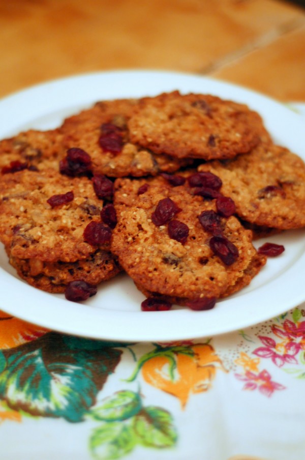 Basen för de här kakorna är pumpafrön, sesamfrön och torkade tranbär. De påminner vagt om klassiska russin-havre-kakor, men är knaprigare, segare och får en lite syrligare sötma av tranbären. Jag tycker att de är helt fantastiska!