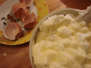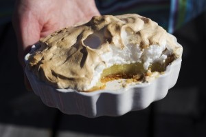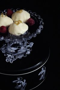 Lemon curd- och marängägg med hallonbacon från Lilla lyktan