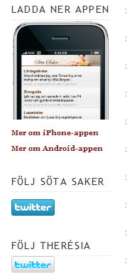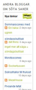 Om du har en blogg och länkar till Söta saker syns det också här, med hjälp av Twingly. I rutan “Andra bloggar om Söta saker” poppar då din bloggs namn, samt en länk upp och gör att Söta sakers läsare kan klicka sig dit.