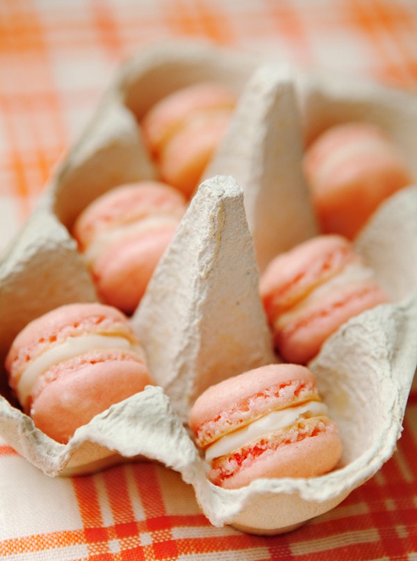 Bild: Nicklas Thegerström. Smultronmacarons med vit choklad från boken Söta saker.