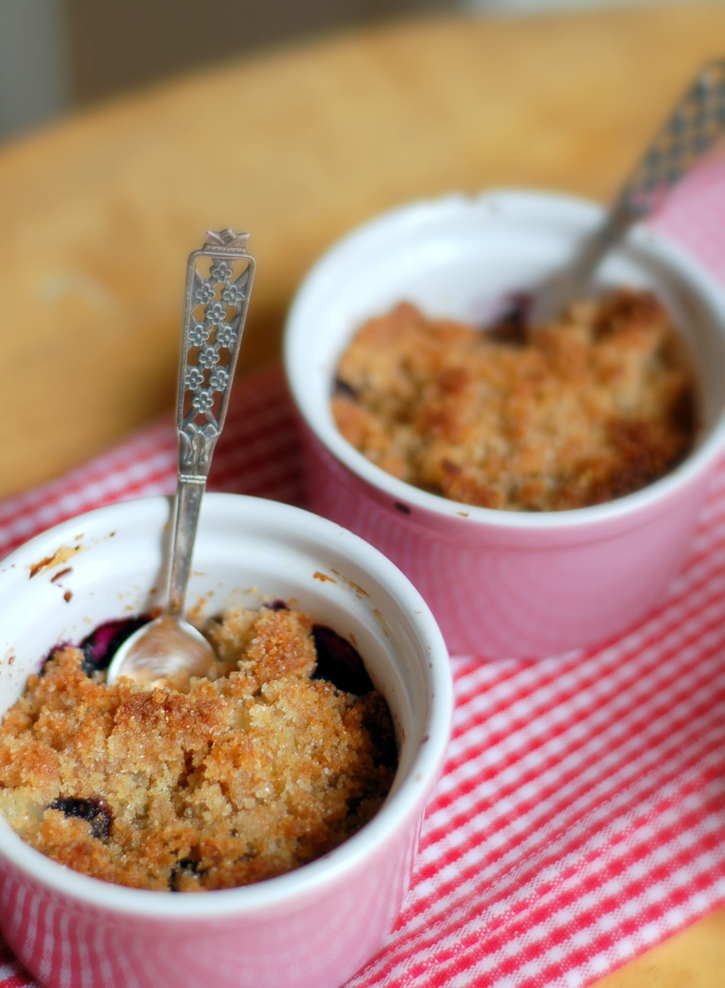 Ströbröd går att använda till fler saker än att bröa kakformar med. En sak som jag gillar att göra är en smuldegspaj med bär, som får en krispig och söt yta med hjälp av ströbrödet. Den här varianten bakar jag i portionsformar, men det går minst lika bra att göra den i en större pajform.