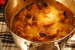 Elin återvann torrt bröd och gjorde fransk löksoppa.