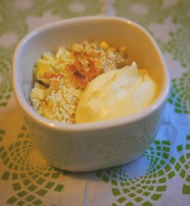 Kjersti återvann sylt och kardemummarostade överblivna brödsmulor till en härligt frestande efterrätt.