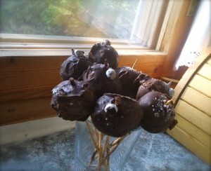 Matilda gjorde chokladöverdragna cake pops av gamla kaksmulor.