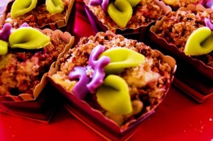 Milla bakade fina smulpajsmuffins med återvunna hallonbiscotti som smuldeg.