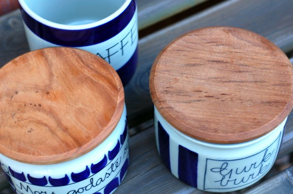 De här porslinsburkarna fick jag med mig hem från mitt senaste besök hemma i Småland. Så himla fina! Ibland kan jag bli så glad över hur vackra saker man gjorde förr – även om de var till för något så vardagligt som sylt eller inlagd gurka. Sedan måste man ju inte använda dem till exakt det som står på dem, istället kan man låta dem bli det man behöver. En blomkruka, en kryddburk eller någonstans att förvara sitt favoritte till exempel.