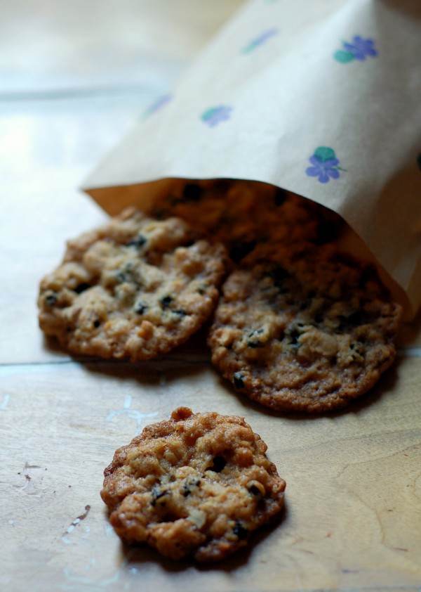 De här kakorna höll liv i oss på den långa bussfärden från Stockholm till Göteborg och tillbaka igen igår. Sega, knapriga och alldeles lagom söta av korinter är de dessutom tidernas bästa söndagskaffesällskap. Korinter är en förfärligt underskattad bakingrediens om ni frågar mig. Märkligt bortglömda, till förmån för de klassiska russinen, trots att de bra mycket godare och betydligt enklare att baka med.