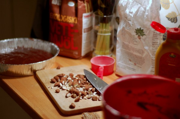 - 1/2 dl grovhackade mandlar