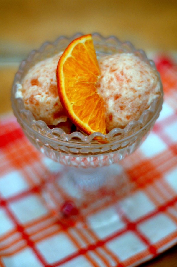Blanda ananasjuice och gressad grapefrukt (blodgrapefrukt eller vanlig) i en kastrull och koka upp tillsammans med sockret. Låt blandningen sjuda i en halv till en minut under omrörning och ställ den sedan åt sidan. Blanda ner vispgrädde och kokoslikör och häll smeten i en frysbar burk. Låt svalna i rumstemperatur så att smeten blir geléig (rör inte i den) och frys sedan i cirka 3-4 timmar. Ta ut och rör då och då under frysprocessen (en gång i halvtimmen ungefär).