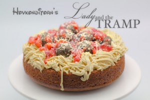 Katarina gjorde Lady och Lufsen-tårta med “spagetti och frikadeller”.
