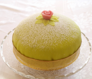 Kjersti bakade prinsessan-på-ärten-tårta.