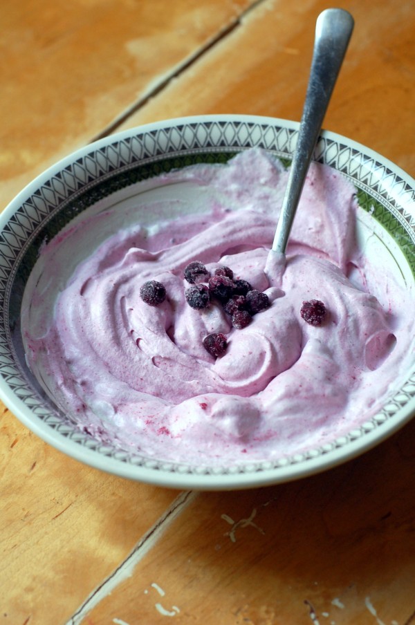 Koka upp blåbären och mosa dem ordentligt med en ballongvisp. Rör i gelésockret och sjud tills det löst sig (30 sekunder till en minut). Låt svalna och vispa under tiden grädden. Rör ner cream cheesen i blandningen och rör sedan ned allt i grädden. Låt stå i kylen ett tag före användning.