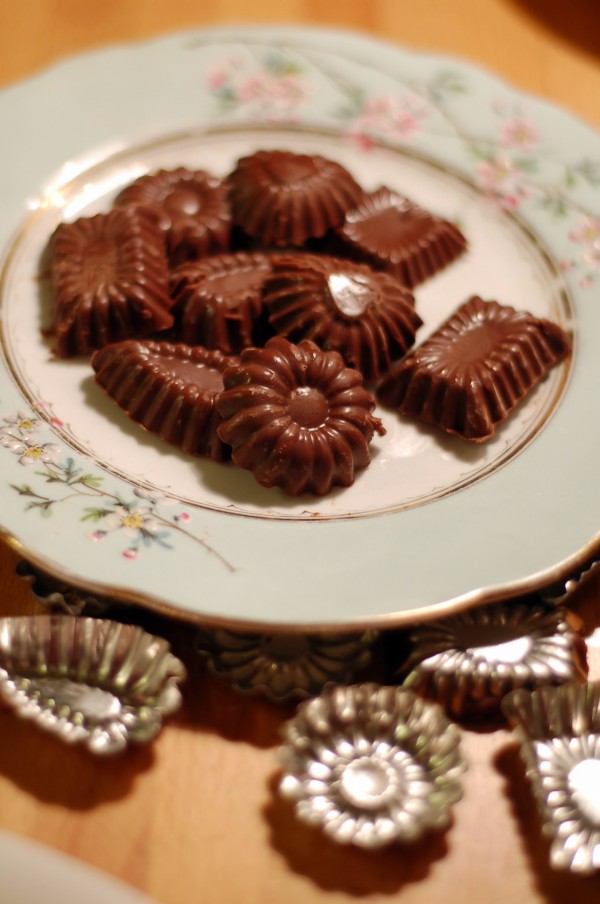 Ett superenkelt sätt att tillverka egna praliner är att helt enkelt smälta sin favoritchoklad (toblerone, geisha eller apelsinkrisp till exempel) i ett vattenbad och hälla smeten i fina chokladformar. Låt dem stå i kylen i någon timme, knacka ut dem och ge bort till en vän eller ät meddetsamma.