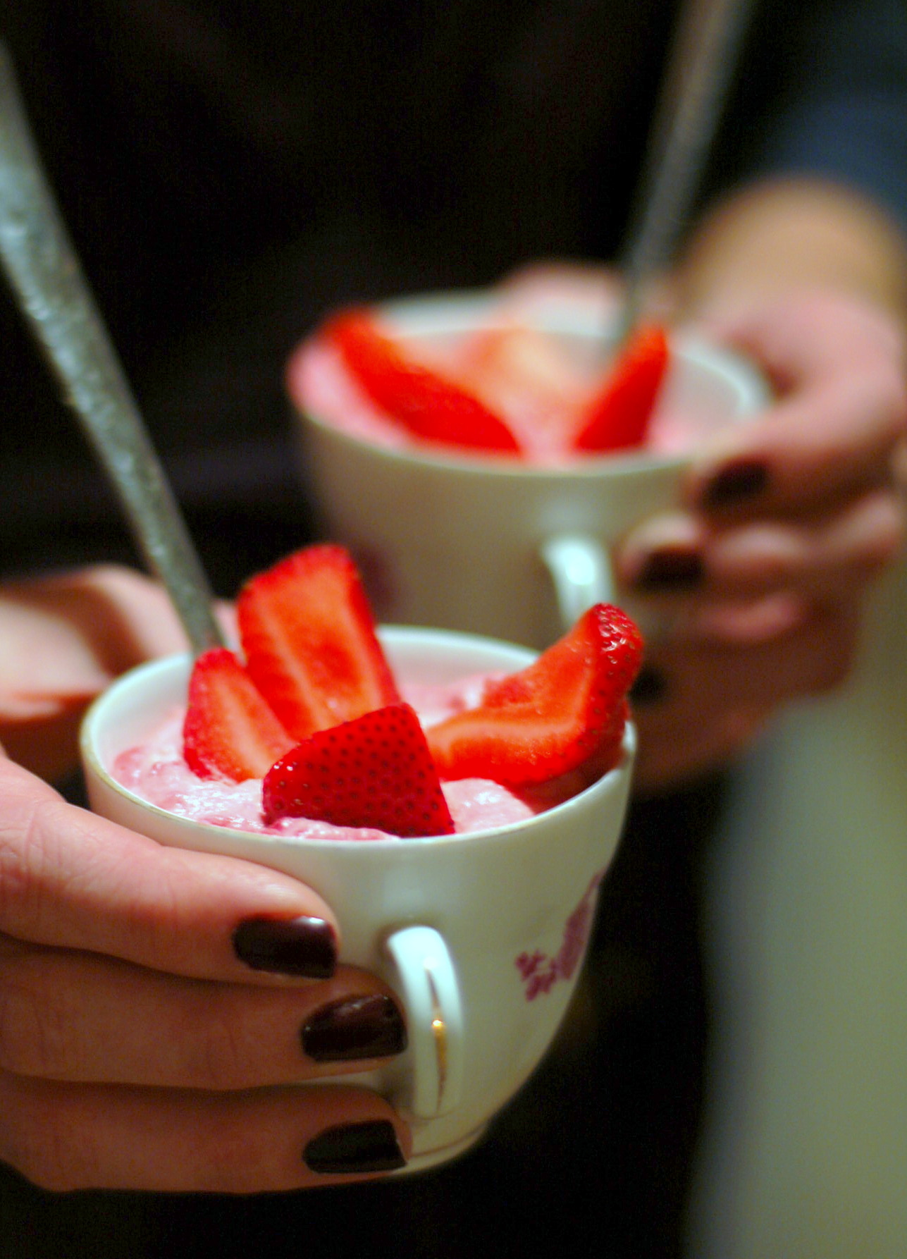 Årets nyårsefterrätt blev en rosa mousse på hallon som är helt fantastiskt krämig och faktiskt väldigt lätt att lyckas med. Mousse av olika slag är en av mina favoritdesserter att servera – dels eftersom de är så lätta att göra, både till få och många gäster, men kanske allra mest för att jag älskar att äta upp resterna. Ett förfärligt bra nyårstips är för övrigt att spara minst en portion efterrätt i kylskåpet att ta fram och äta efter festen.