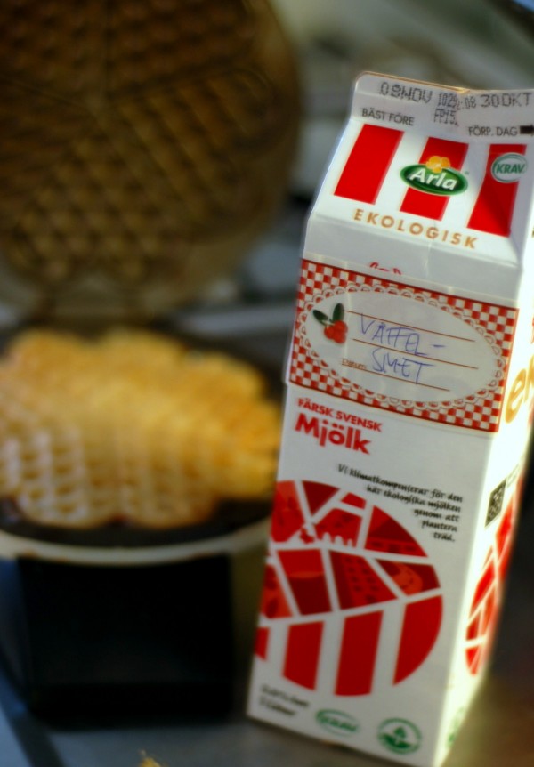 En sjukt trist grej med att ha bråttom på morgonen är att man inte hinner göra så god frukost som man skulle vilja. Om man som jag vill kunna äta våffelfrukost trots tidspress är ett smart tips att göra våffelsmet på söndagen och förvara den i ett urdiskat mjölkpaket under veckan. Sedan tar det inte längre tid att grädda våfflor än att koka kaffe på stressiga vardagsmorgnar. Här är mitt bästa våffelrecept för den som vill prova.