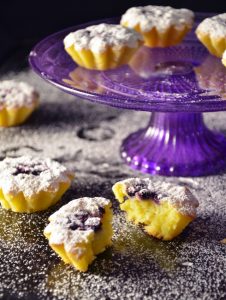 Glutenfria petit-fourer med kokos, citron och blåbär från 175 grader