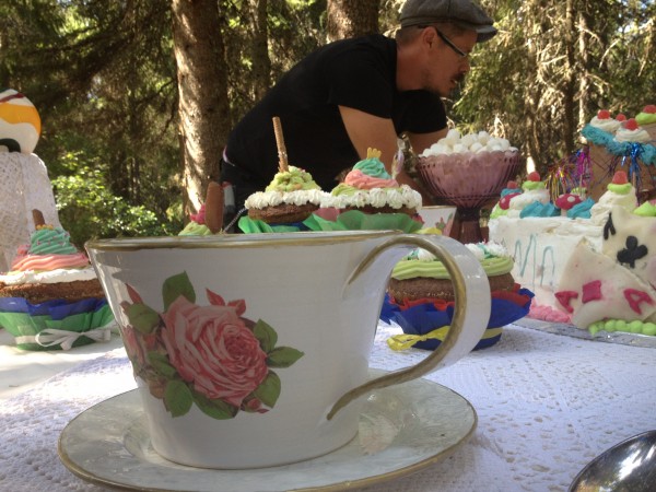 Snart är det dags att lämna Dalarna och fara hem till storstan igen. Lite tilltuffsad av regn och vind, rejält trött och många erfarenheter rikare. Just den här inspelningen är verkligen årets höjdpunkt, med vackra skogar som kontor, gummistövlar istället för klackar och en massa underbara människor att jobba tillsammans med. Det allra roligaste är att få vara med och skapa fantastiska världar, som man själv skulle ha storknat över när man var barn. Som det här helt galna Alice-i-Underlandet-landet i jätteformat, från förra året, byggt av kakor och godis…