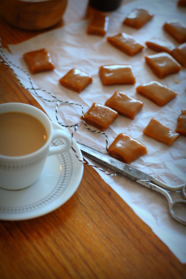 Förra veckan hade jag årets första kolakokardag. Ja, jag har sådana. Och de är verkligen att rekommendera. När man kokar kola kan man nämligen inte hålla på med en massa annat. Man kokar bara kola. Och det är förfärligt meditativt att sitta och slå in smöriga små kolor i fint papper medan doften av nästa omgång ryker från spisen och radion raspar i bakgrunden (vår gamla antennlösa stackare får bara in P2 just nu, så det blir klassisk musik oavsett humör). Att det dessutom är ens plikt att provsmaka alla olika sorter minst ett par gånger gör ju alltsammans ännu lite trevligare.