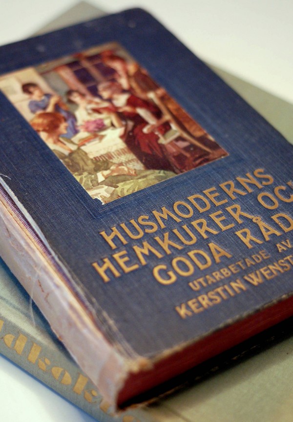 Den här gamla klenoden hittade jag i en av mammas bokhyllor i helgen. Boken tillhörde en gång hennes mormor och är alldeles bräddfull av smarta, smått galna och fullkomligt vanvettiga husmorsråd från det glada 20-talet. Som till exempel hur man gör sitt eget gurgelvatten, hur man blir av med gikt, sluddrande tal, sömnvandring eller hudklåda, liksom hur man bäst dämpar hysteriska anfall och “gråtkramp” – en åkomma som för övrigt främst drabbar “nervösa kvinnor”.