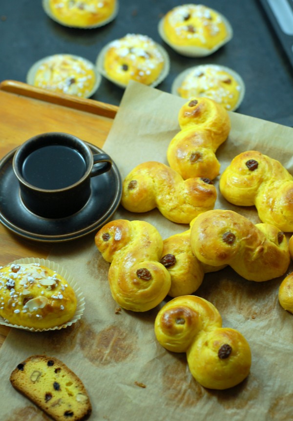 Summary in English: Baking an insane amount of saffron buns today. It’s Lucia day, which calls for all the buns you can eat!