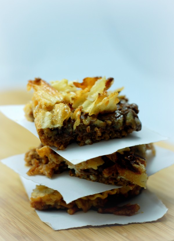 Håll i hatten, kära vänner, för det här med chipskaka är verkligen inget för de försiktiga. För dem av er som däremot drivs av äventyrligt mod och en omättlig längtan efter snacks kan det dock mycket väl vara det bästa som hänt sedan skivat bröd. Chips, jordnötter, salta pinnar, choklad och ljuvligt seg kola i en alldeles galen och oväntat fantastisk blandning. Låt mig presentera: Chipskakan!