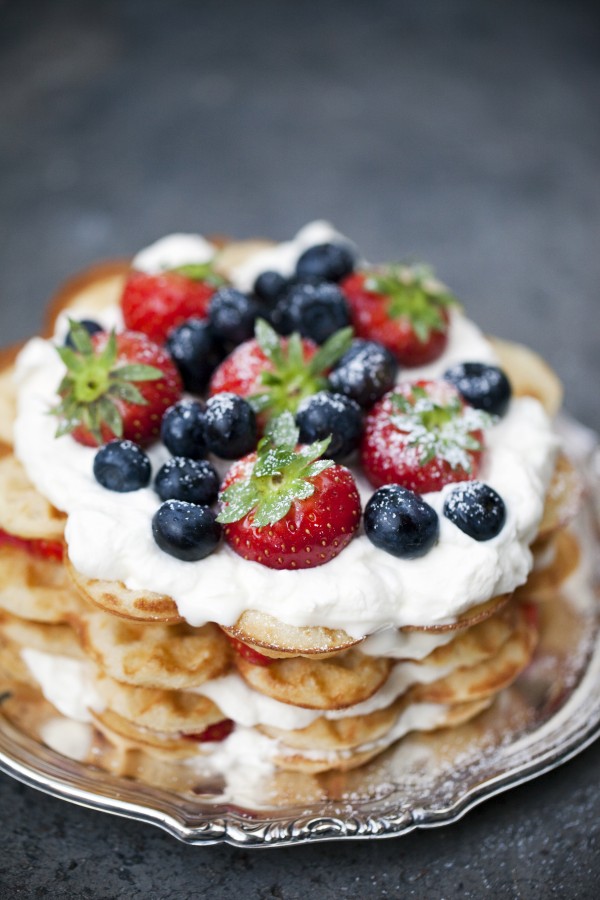 I år tänker jag fira med världens godaste våffeltårta. Receptet kommer från boken Sött från förr, som man kan köpa här om man vill gillar somriga retrorecept. Bilden är tagen av Josefin Casteryd.