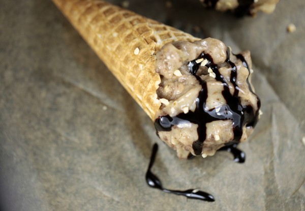 Jag har svårt för devisen att “frukt är godis”, men däremot kan frukt mycket väl vara glass. Den här chokladglassen gör man superenkelt på frysta bananer och några skedar chokladpålägg. Så här går det till:
