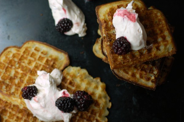 Våfflor är mitt bästa mellanmål! De här är gräddade efter min morfars recept som jag alltid använder – här hittar du det. Goda som de är, med en klick creme fraiche och lite riven ost, eller som söt klassiker, med slött vispad grädde och färgstarka bär.