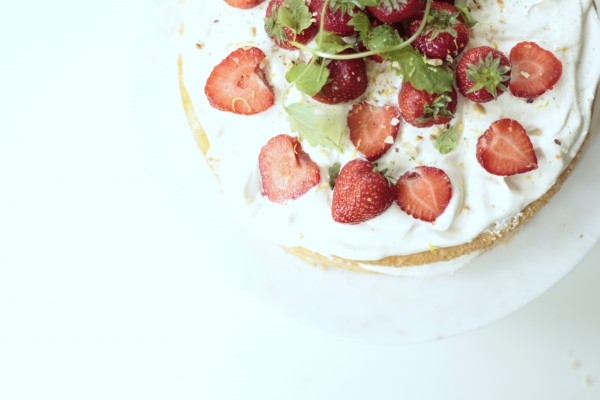 Vispa ägg och socker. Rör ner övriga ingredienser och häll smeten i en smort tårtform. Grädda i 175 grader i 35 minuter. Låt svalna och dela i tre skikt. lägg några jordgubbar åt sidan för dekoration. Mosa resten av jordgubbarna och bred ut ett tjockt lager på det understa skiktet. Vispa grädden tillsammans med sockret och bred ut ett lager på det övre skiktet. Lägg på locket och bred resten av grädden ovanpå och runt tårtans kanter. Dekorera med hela jordgubbar.