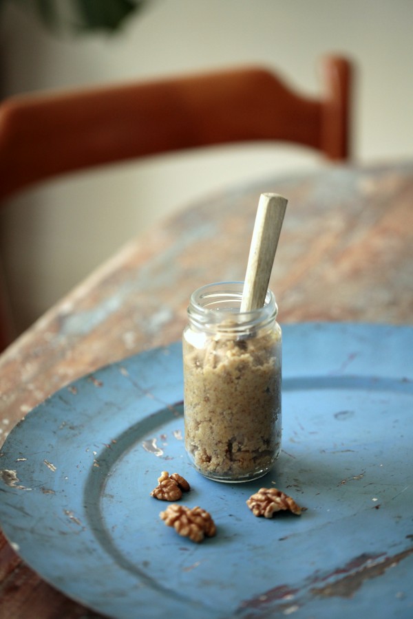 Vet ni att det är hur lätt som helst att göra sitt eget valnötssmör?! Och att det dessutom är ett fantastiskt gott pålägg. Jag slänger ner några nävar ekologiska valnötter, en nypa salt och lite flytande honung i en mixer och kör tills det blir en krämig och smörig massa – blir det inte det kan man ha i lite mer honung eller en gnutta rapsolja. Sedan är det klart och klarar sig utmärkt på burk i en vecka i skafferiet.