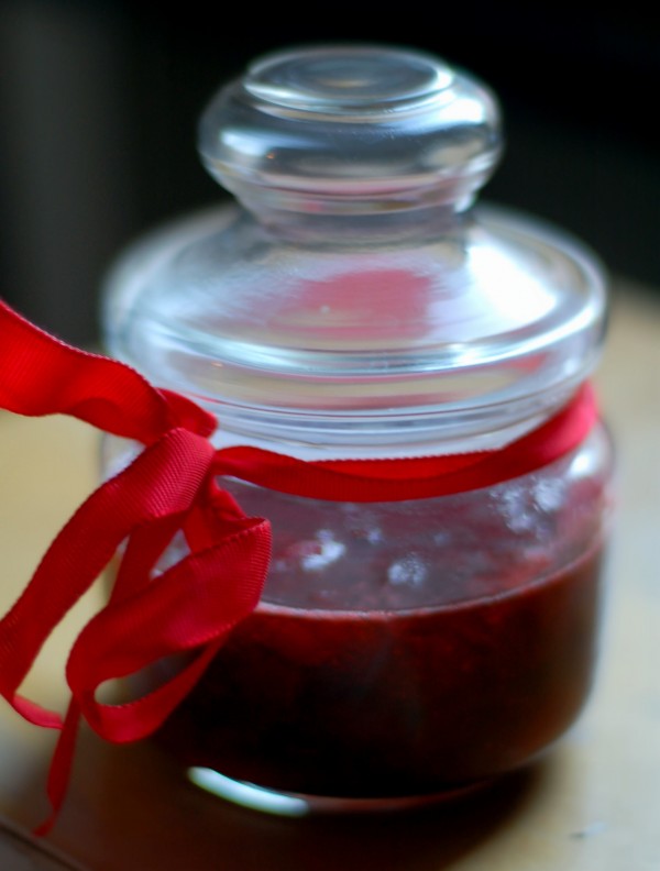 Sylt och marmelad är en fantastiskt bra present tycker jag. Jag försöker samla på mig fina, inte alltför dyra glasburkar i olika storlekar, som jag har stående i skåpet tills det är dags att gå på kalas. Då gör jag en enkel och god sylt av det jag har hemma för tillfället, häller i lämplig burk och dekorerar med något trevligt band. Den här lite rårörda jordgubbssylten har fått smak av lavendelsocker och är supergod till starka ostar och riktigt grovt bröd.
